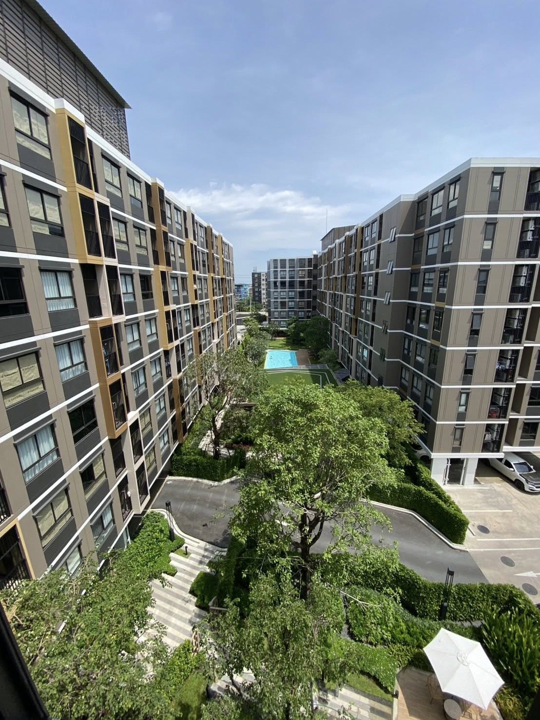 Corner unit on the 6th floor, pool view, south-facing with good southern breeze. Avoids direct east–west sun in the morning and evening. 1 Bedroom Plus condo, 36.89 sq.m.