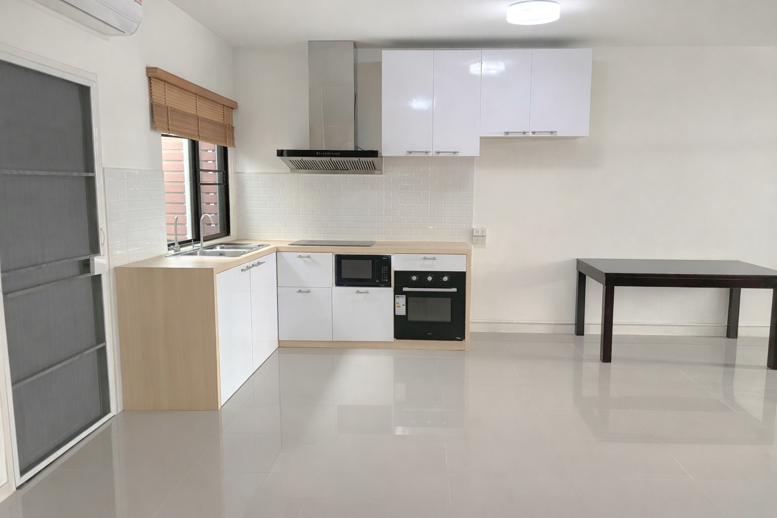 ครัวบิ้วอิน ซิงค์ล้างจาน เตาไฟฟ้า 2 หัว เครื่องดูดดควัน เตาอบ microwave