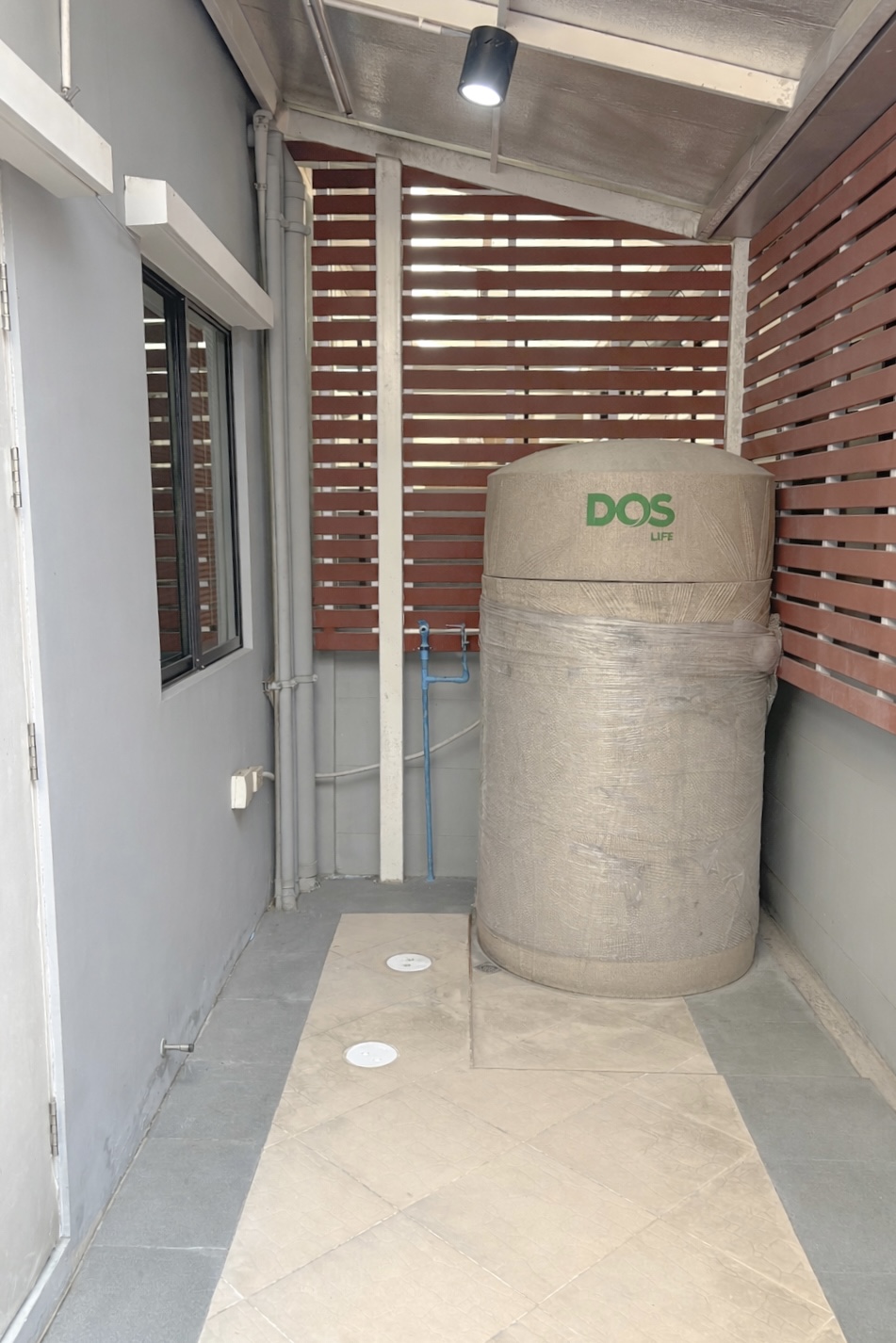 หลังบ้าน ปูกระเบื้อง(เว้นช่องเซอร์วิสไว้ทุกจุด)/ ลงเสาเข็มบริเวณ โซนซักล้าง(ไม่มีปัญหาพื้นทรุด) กำแพงระบายอากาศสะดวก