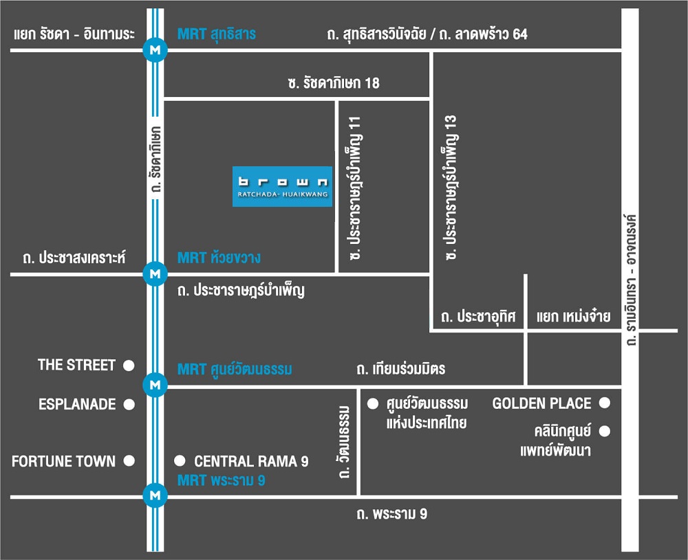 ทำเลดี การเดินทางสะดวก อยู่ห่างจาก MRT สถานีห้วยขวางประมาณ 900 เมตร
