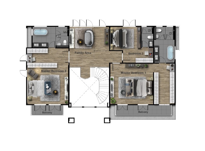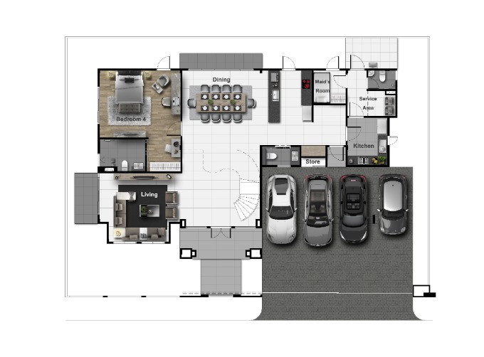4 ห้องนอน 5 ห้องน้ำ 1 ห้องนั่งเล่น 4 ที่จอดรถ ขนาด 120.70 ตร.ว.