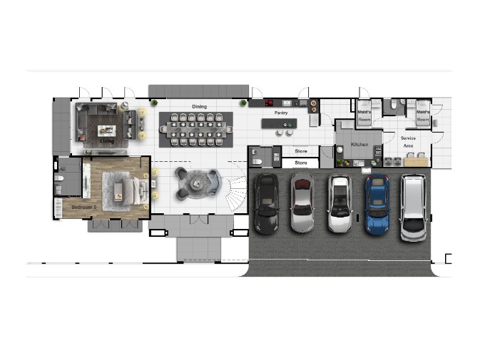 5 ห้องนอน 6 ห้องน้ำ 1 ห้องนั่งเล่น 5 ที่จอดรถ ขนาด 151.90 ตร.ว.