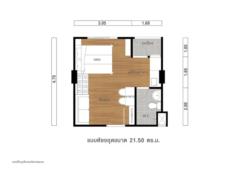 1 ห้องนอน 1 ห้องน้ำ ขนาด 26.11 ตร.ม.