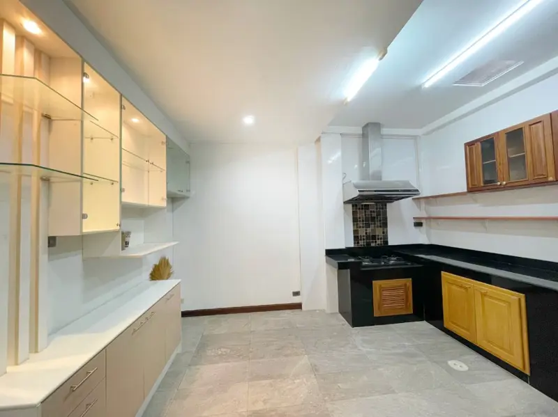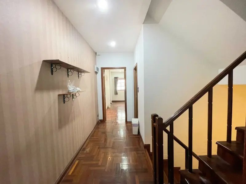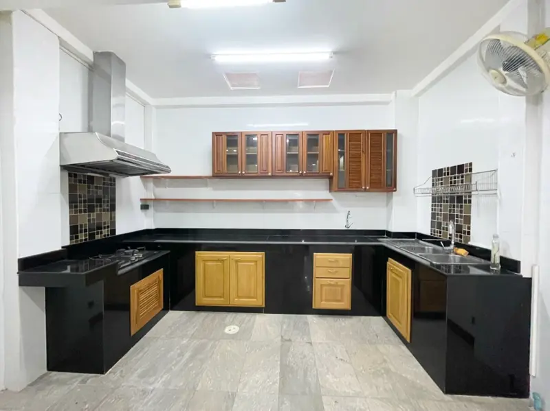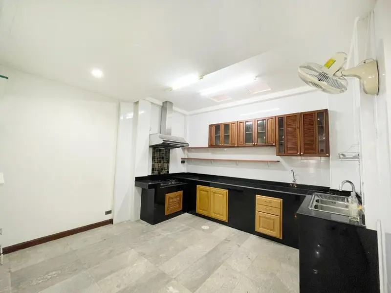 พื้นหินอ่อนและปาร์เก้ รีโนเวทและต่อเติมครัวด้านหลัง เสริมความแข็งแรงด้วยการลงเสาเข็มเพิ่มด้านหน้าและด้านหลัง ห้องน้ำติดประตูไม้สักทุกห้อง