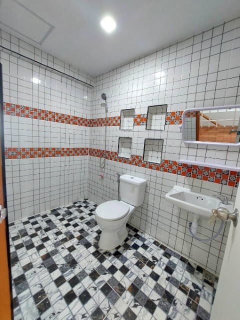 การต่อเติมเต็มทั้งหลังบ้านเเละหน้าบ้าน พื้นบ้านปูด้วยกระเบื้อง สวยงามทั้งหลัง