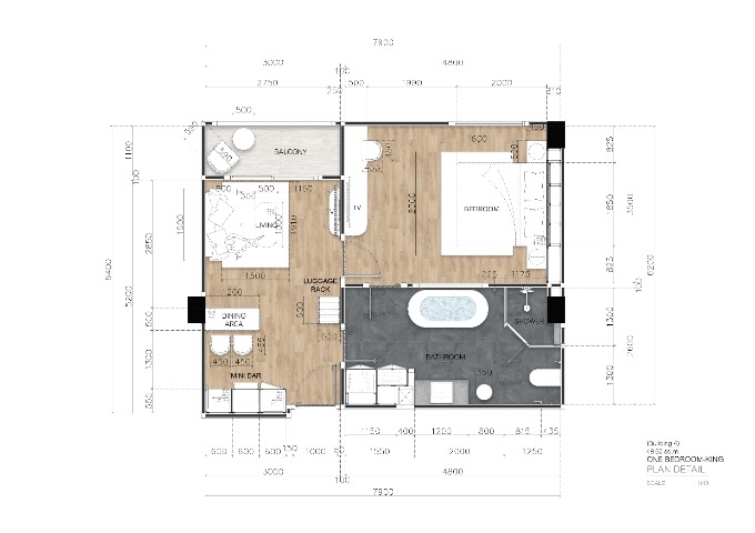 1 ห้องนอน 1 ห้องน้ำ ชั้น 6 อาคาร 3 ขนาด 49.18 ตร.ม.