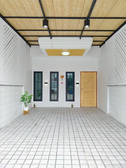 ต่อเติมโรงจอดรถหน้าบ้าน บิวท์อินครัว