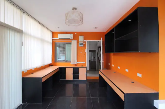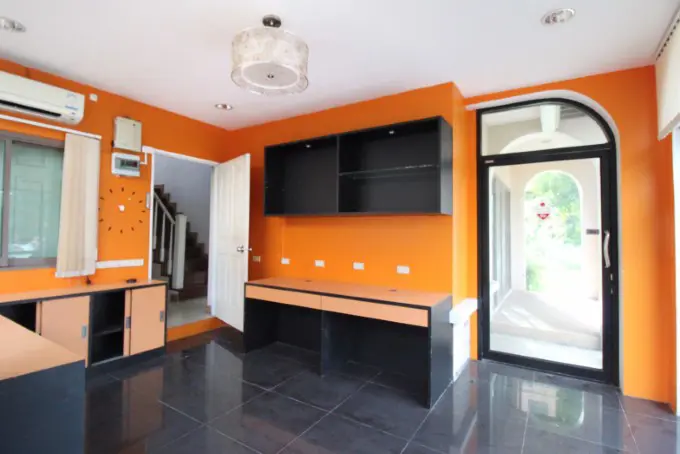 2 ห้องทำงาน 2 ที่จอดรถ พร้อมแอร์ 3 ตัว,เครื่องทำน้ำอุ่น 2 ตัว, บิวท์อินครบ