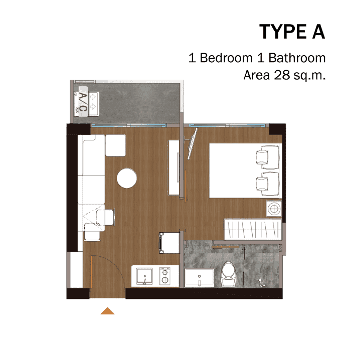 1 ห้องนอน Type A แบบ 1 ห้องนอน 1 ห้องน้ำ ขนาด 28 ตารางเมตร