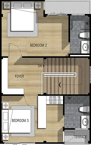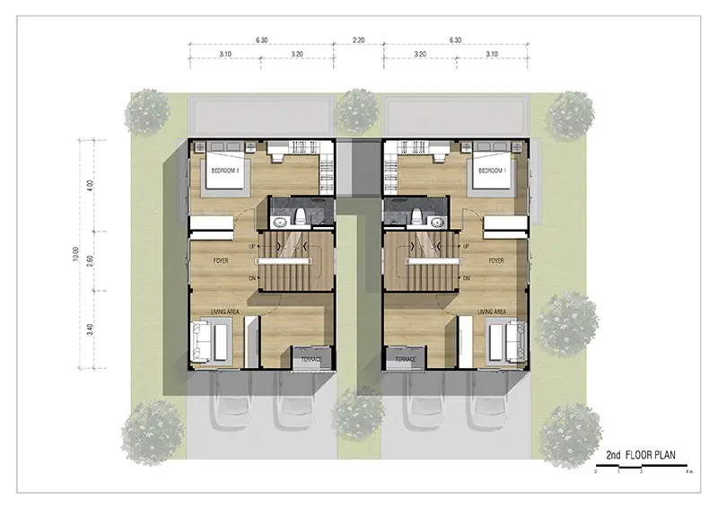 แบบ 3 ห้องนอน 4 ห้องน้ำ หน้ากว้างอาคาร 9.4 เมตร