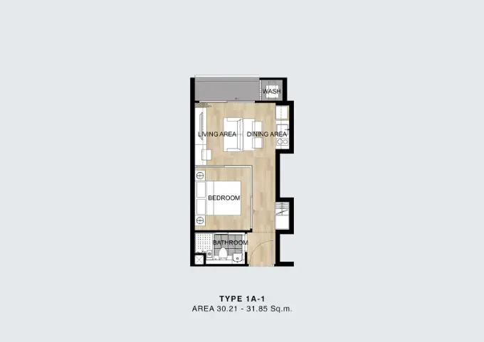 ขนาด 29.96 ตร.ม. ชั้น 2 อาคาร D