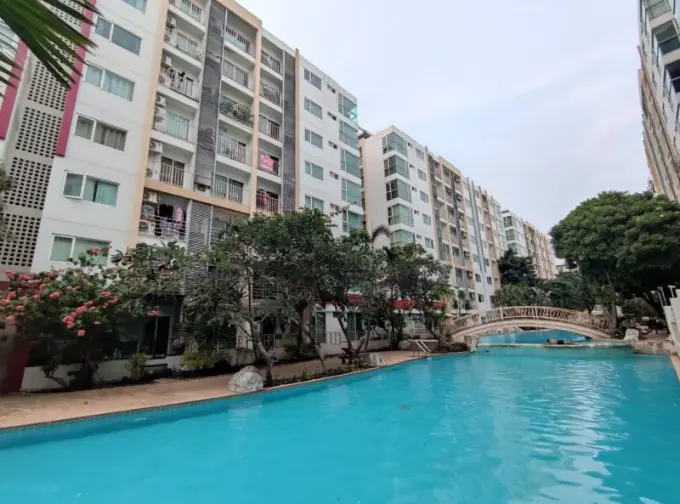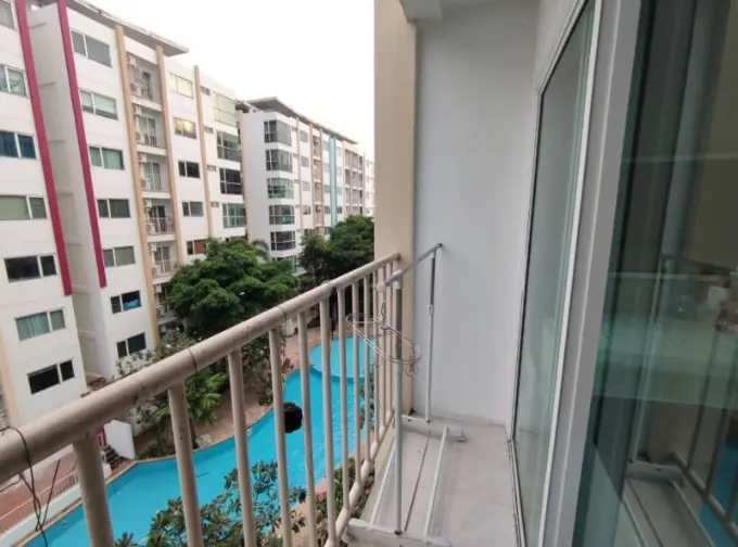 -สระว่ายน้ำขนาดใหญ่ อยู่หน้าตึก เดินลงไปสบายมากค่ะ ข้างสระมีเก้าอี้พักผ่อน ต้นไม้ร่มรื่น ตู้กดน้ำ ตู้เต่าบิน