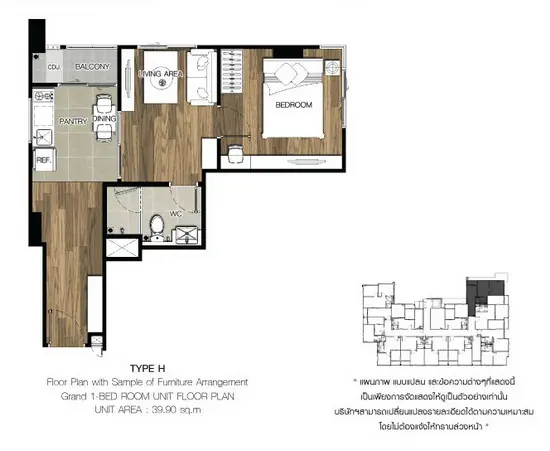 1 ห้องนอน Type H ขนาด 39.44 ตารางเมตร พร้อมอยู่ !!!