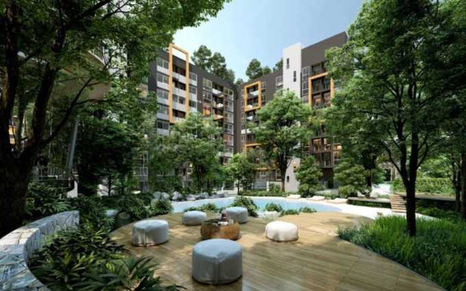1 ห้องนอน 1 ห้องน้ำ 1 ห้องนั่งเล่น ขนาด 25.12 ตร.ม. วิว: สระ