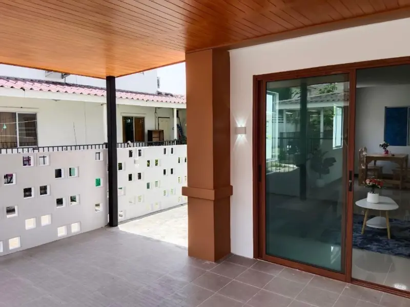 -พื้นที่ด้านข้างบ้านปูกระเบื้องกันลื่น พร้อมปรับปรุงรั้วบ้าน ตีระแนงปังตา เพื่อความเป็นส่วนตัว