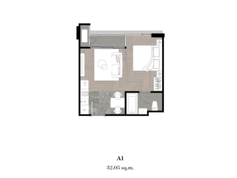 1 ห้องนอน 1 ห้องน้ำ ขนาด 32.05 ตร.ม.