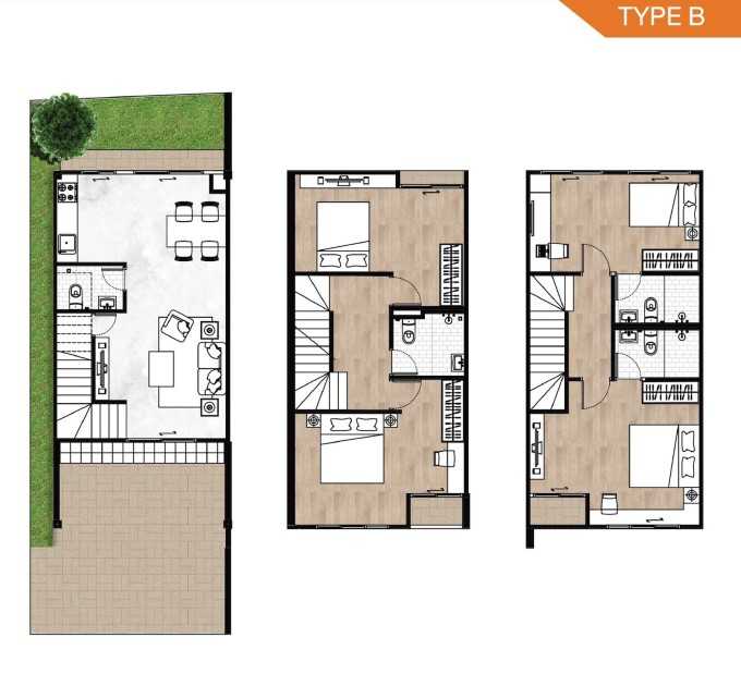 ใหม่ ทาวน์โฮม 3 ชั้น หน้ากว้าง 4.875 เมตร ขนาด 23 ตร.วา พื้นที่ใช้สอย 196.3 ตร.ม.