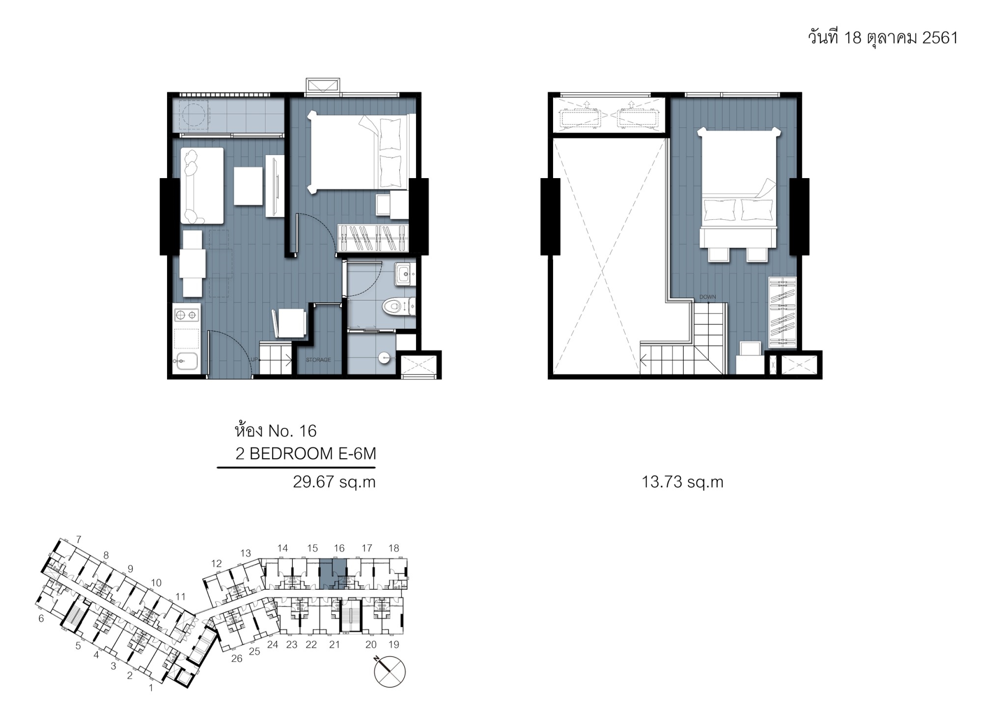 2 ห้องนอน 1 ห้องน้ำ ชั้น 29 **แบบ Loft Type : E