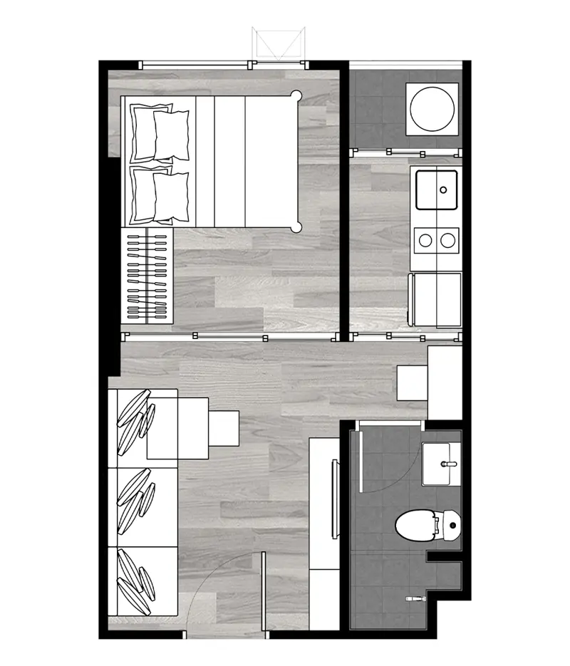 Type B2-03 1 ห้องนอน 1 ห้องน้ำ ชั้น18 ขนาด 26.07 ตร.ม.
