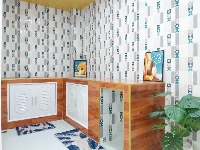- ต่อเติมครัวใหม่ พร้อมเคาท์เตอร์และซิงค์ล้างจาน สวยงาม