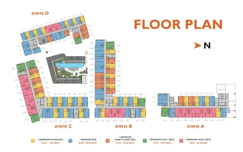 Type B1-13 1 ห้องนอน 1 ห้องน้ำ ชั้น7 ขนาด 23.78 ตร.ม.