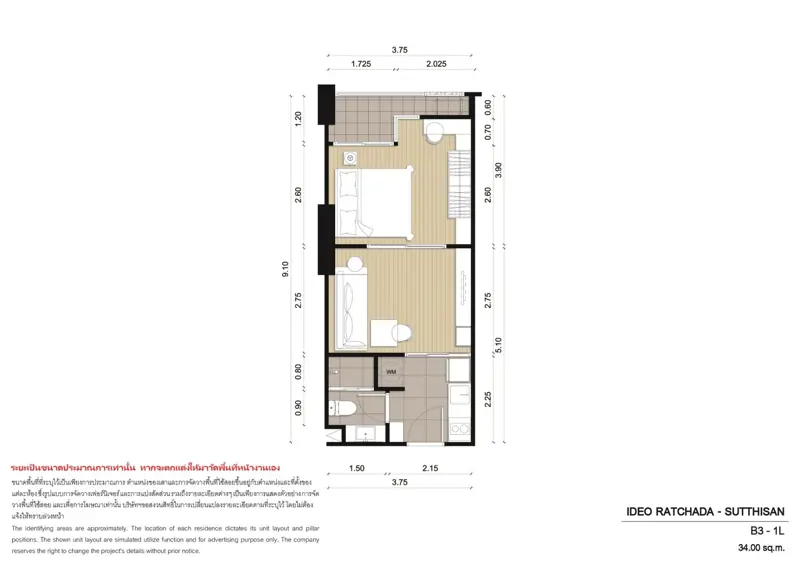 :emoji-2764:️ 1 ห้องนอน ขนาด 34.67 ตรม.
