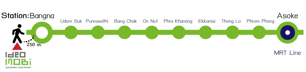 Ananda Development Public Co.LtdIdeo Mobi Sukhumvit Eastpoint is situated on Sukhumvit Road, between Soi Phut Anan Stadium and Soi Lasalle (Sukhumvit 105), in Bangna district. It is conveniently located within 250 meters away from Bangna Skytrain (green line). Residents can travel easily with several expressways nearby, such as Burapha Withi Expressway, Chalerm Maha Nakhon Expressway, and Kanchanaphisek expressway.