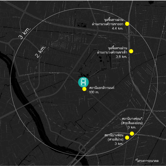 ทำเลที่ตั้งโครงการตั้งอยู่ตามแนวรถไฟฟ้าสายสีม่วงช่วงสถานีต้นๆ