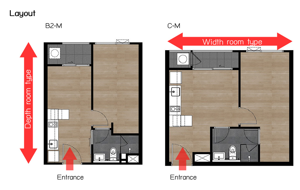 The Studio type has only one layout design which can be in a reverse layout (Mirror Room) and different position on the building plan.