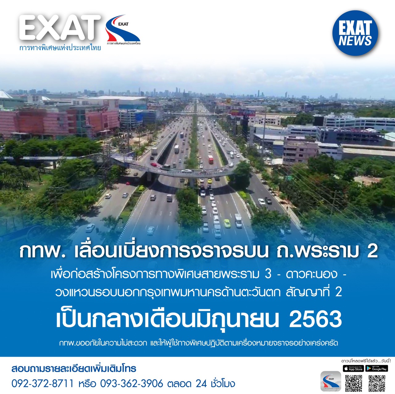 ดังนั้น กทพ.ผู้รับผิดชอบก่อสร้างโครงการทางพิเศษสายพระราม 3-ดาวคะนอง-วงแหวนรอบนอกกรุงเทพมหานครด้านตะวันตก สัญญาที่ 2 ซึ่งก่อสร้างบนพื้นที่เกาะกลางถนนพระราม 2 จึงมีความจำเป็นต้องเลื่อนการเบี่ยงการจราจรบริเวณที่ก่อสร้างโครงการฯ ซึ่งกำหนดการเบี่ยงจราจรเดิม คือ วันที่ 15 พฤษภาคม 2563 และมีกำหนดการเบี่ยงจราจร (ใหม่) เป็นประมาณกลางเดือนมิถุนายน 2563 โดยมีรายละเอียด ดังนี้