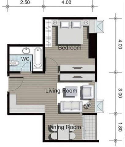 ประเภท : 1 ห้องนอน 1 ห้องน้ำ