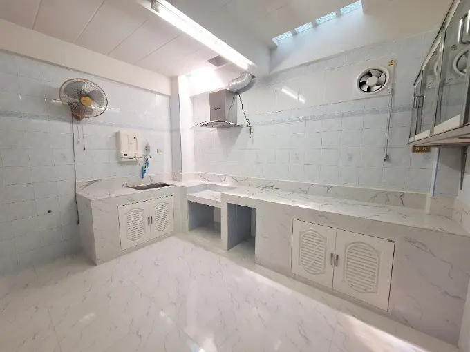- ต่อเติมครัวไทยมี เคาน์เตอร์ พร้อมเครื่องดูดควันและพัดลมระบายอากาศ