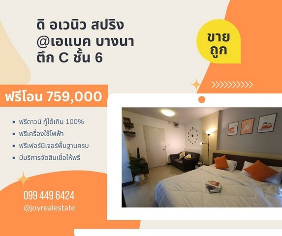 ขายคอนโด โครงการ ดิ อเวนิว สปริง แอท เอแบค บางนา (The Avenue Spring@ABAC Bangna) ตึก C ชั้น 6 22.26 ตร.ม. 759,000 บาท