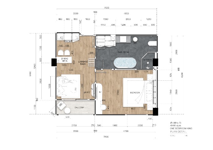 1 ห้องนอน 1 ห้องน้ำ ชั้น 7 อาคาร 3 ขนาด 49.58 ตร.ม.