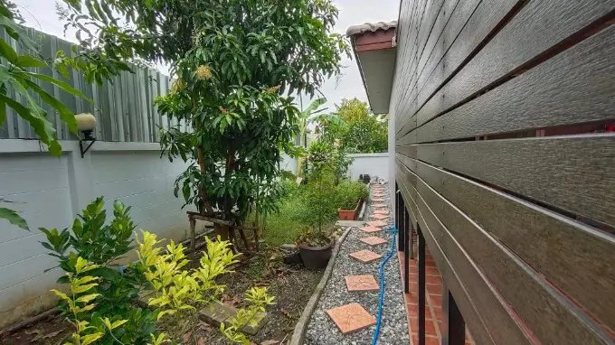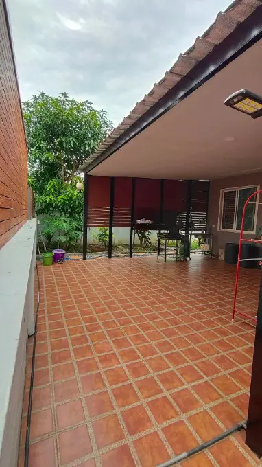 บ้านสวย น่าอยู่ พร้อมต่อเติมครัว ปูกระเบื้องรอบบ้าน ถนนหน้าบ้านกว้าง ร่มรื่นสงบ เหมาะกับคนที่ไม่ชอบความวุ่นวาย