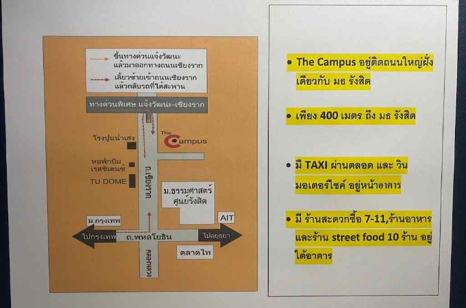 ให้เช่า The Campus Apartment 400 เมตร จาก ธรรมศาสตร์ รังสิต