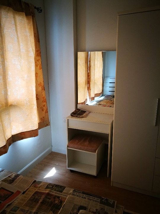 - เตียง + ที่นอน 5 ฟุตพร้อมเครื่องนอน + โต๊ะเครื่องแป้ง +ตู้เสื้อผ้า + ผ้าม่านห้องนอน