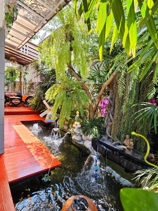 เป็นบ้านมุม ติดถนนเมนของโครงการ ตกเเต่งจัดสวนน่าอยู่ มีระบบรดน้ำต้นไม้อัตโนมัติ ตั้งเวลาได้. มีโซนม่านน้ำตกข้างบ้าน จัดทำระบบบ่อกรองรองรับการเลี้ยงปลาเรียบร้อย สามารถนำปลาเข้ามาเลี้ยงเพิ่มเติมได้