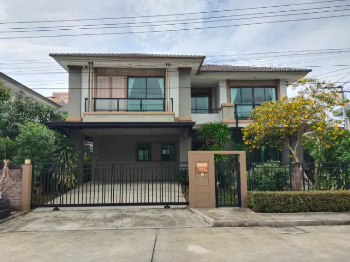 ขายบ้านเดี่ยว 2 ชั้นราคาพิเศษ เนื้อที่ 70.1 ตารางวา พื้นที่ใช้สอย 222 ตารางเมตร แบบบ้าน 4 ห้องนอน, 5 ห้องน้ำ, 1 ห้องรับแขก, 1 ห้องรับประทานอาหาร, 1 ห้องครัว, 1 ห้องแม่บ้าน, จอดรถภายใน 2 คัน (จอดบริเวณรอบบ้านได้อีกหลายคัน) , มีพื้นที่จัดสวนรอบบ้าน