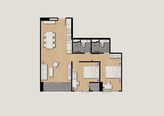 2 Bedroom - ไซมิส สุรวงศ์ ขนาด 73.86 ตารางเมตร