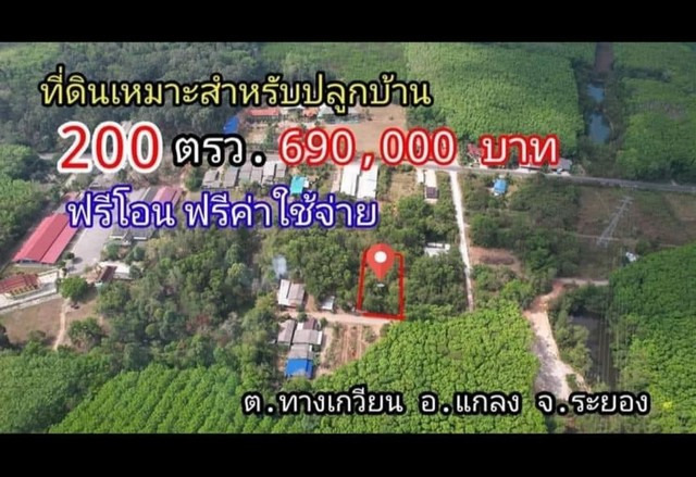 ที่ดินสวย 200 ตารางวา อำเภอแกลง จังหวัดระยอง