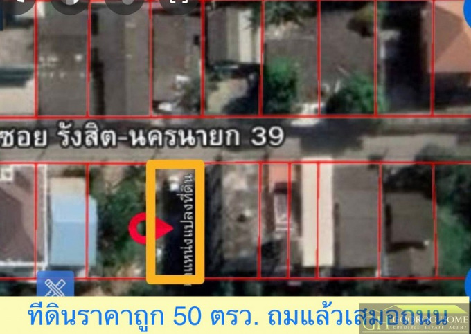 ขายถูก ที่ดิน 50 ตร.วา ซอย รังสิต-นครนายก 39 ถ.รังสิตนครนายก ธัญบุรี ปทุมธานี ใกล้ ตลาดสด สะพานแดงคลอง1