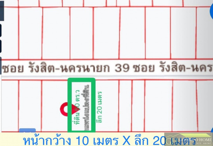 ขายถูก ที่ดิน 50 ตร.วา ซอย รังสิต-นครนายก 39 ถ.รังสิตนครนายก ต.ประชาธิปัตย์ อ.ธัญบุรี จ.ปทุมธานี ใกล้ ตลาดสด สะพานแดงคลอง1 ตลาดรังสิต รพ. บางปะกอก-รังสิต2 รพ. เปาโลรังสิต11 รพ.ประชาธิปัตย์ รพ. ปทุมเวช เหมาะการสร้างบ้านเดี่ยว บ้านแฝด ทาว์เฮาส์