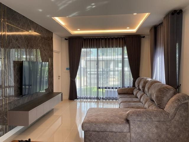 พร้อมเฟอร์นิเจอร์ และเครื่องใช้ไฟฟ้า ตัวบ้านมีติดตั้ง Home Automation สัญาณกันขโมยกับประตูหน้าต่างทุกบานในบ้าน และกล้อง CCTV รอบบ้าน 4 ตัวดูผ่านมือถือได้ และระบบประตูรั้วไฟฟ้าพร้อมครบจบ หน้าบ้านหันทางทิศใต้ อายุบ้าน 1 ปี