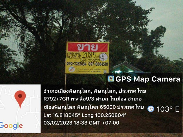ขายที่ดิน 0-2-8.5 ไร่ เข้าออกได้2ทาง พระลือซอย9/5 อ.เมือง จ.พิษณุโลก ZN363