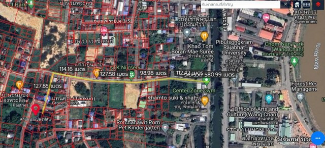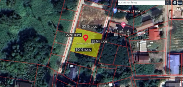 - 0-2-8.5 ไร่ หน้ากว้าง 28.64 ม. ลึก 30.16 ม. โดยประมาณ