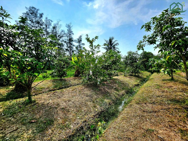 ลักษณะ: แปลงที่ดินเป็นร่องสวน มีปลูกผลไม้ไว้บ้างแล้ว แปลงที่ดินอยู่ในโครงการบ้านสวนขวัญ
