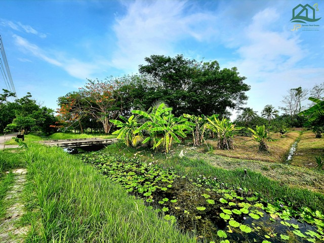 - ด้านหน้าแปลงที่ดินมีร่องลำรางน้ำ มีปลูกดอกบัว ไว้แล้ว บรรยากาศดี ไม่เปลี่ยว