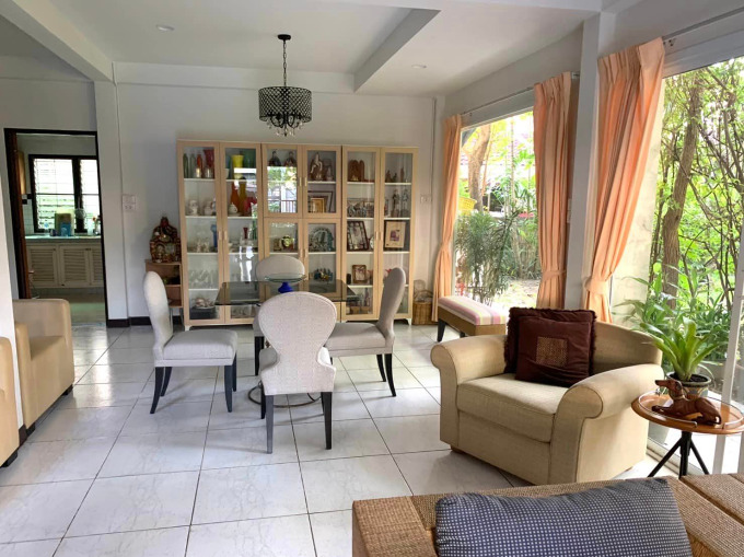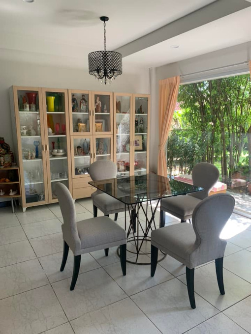 ขายบ้านเดี่ยว 2 ชั้นหลังใหญ่ หมู่บ้าน สัมมากรรามคำแหง 112 ขนาดเนื้อที่120 ตารางวา / พื้นที่ใช้สอย 245 ตารางเมตร 4 ห้องนอน 4 ห้องน้ำ 1 ห้องแม่บ้าน 1 ห้องครัว - ห้องแม่บ้าน พร้อมห้องน้ำ แยกสัดส่วน เครื่องปรับอากาศ 4 เครื่อง - ที่จอดรถ 2 คัน ขั้นบน : ห้องนอน แบ่งเป็น ห้องนอน และ ห้องแต่งตัว ชั้นล่าง : ประกอบด้วย - ห้องโถงใหญ่ใช้เป็น ห้องรับแขก / ห้องรับ ประทานอาหาร /ห้องพักผ่อน /ห้องครัว บ้านออกแบบเป็นห้องโปร่งกว้างด้วย กระจกใส ทั้งด้าน สามารถมองทะลุไปถึงสวน มีต้นไม้ใหญ่ ตกแต่งแบบรีสอร์ท