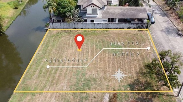 ขายที่ดิน หมู่บ้านวินด์มิลล์ (Windmill Village) ซอยกิ่งเก้ว 21 ขนาด 181 ตารางวา แปลงติดริมน้ำใกล้ห้าง Mega Bangna